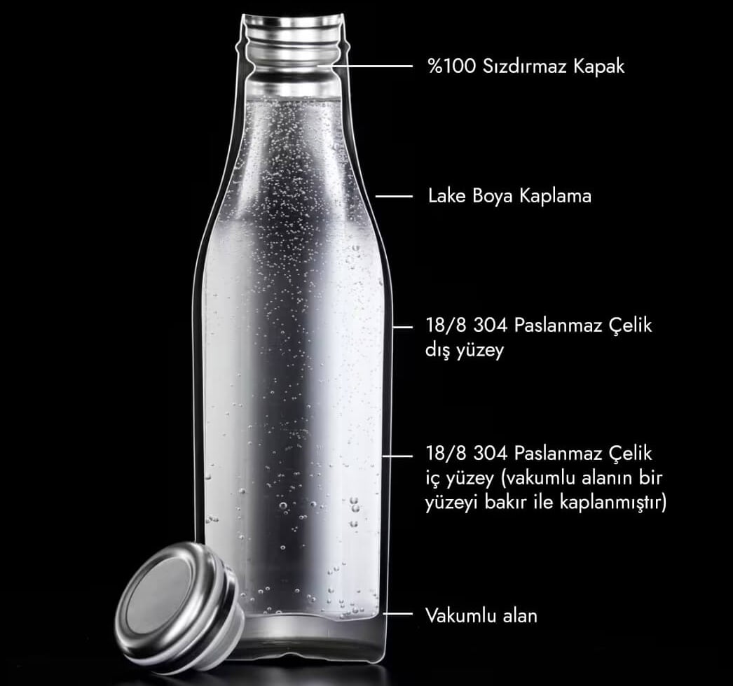 Vakumlu alan, içecek ile dış ortam arasında ısı alışverişini büyük ölçüde engelleyerek içeceklerin uzun süre sıcak ya da soğuk kalmasını sağlar.