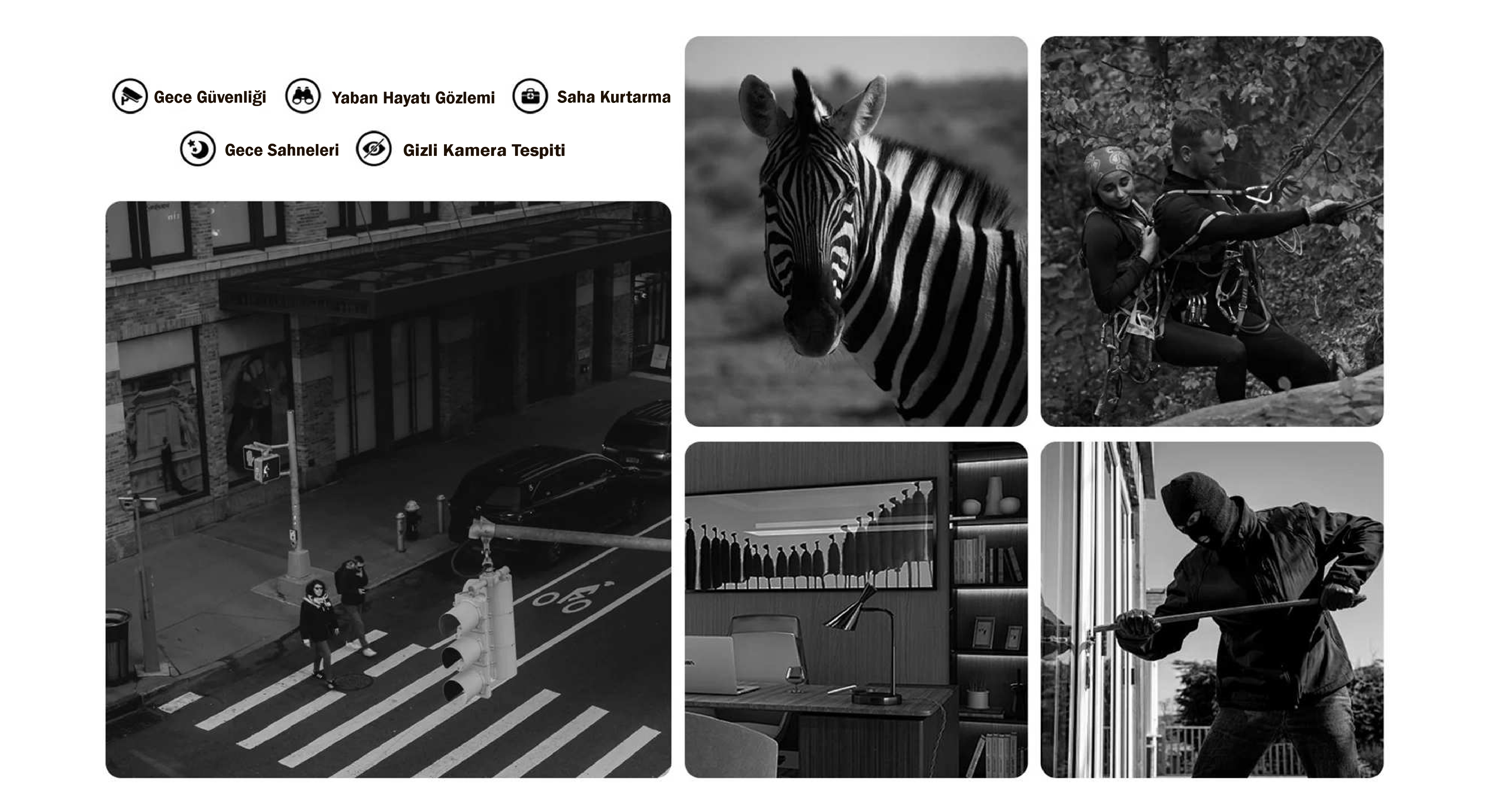 Çıplak gözle görülemeyen ısıyı görselleştirerek sıcaklık kontrastlarını vurgular.