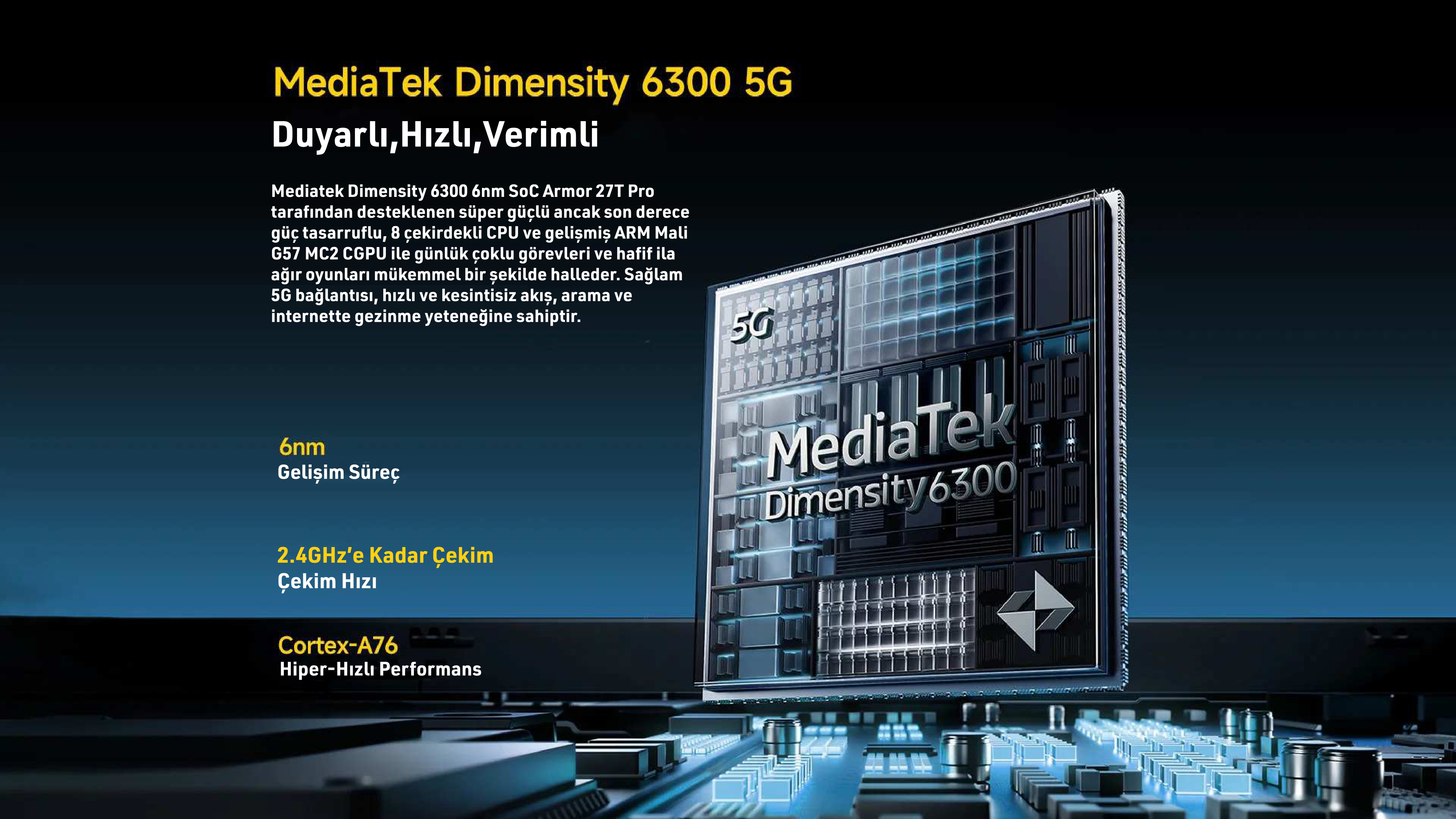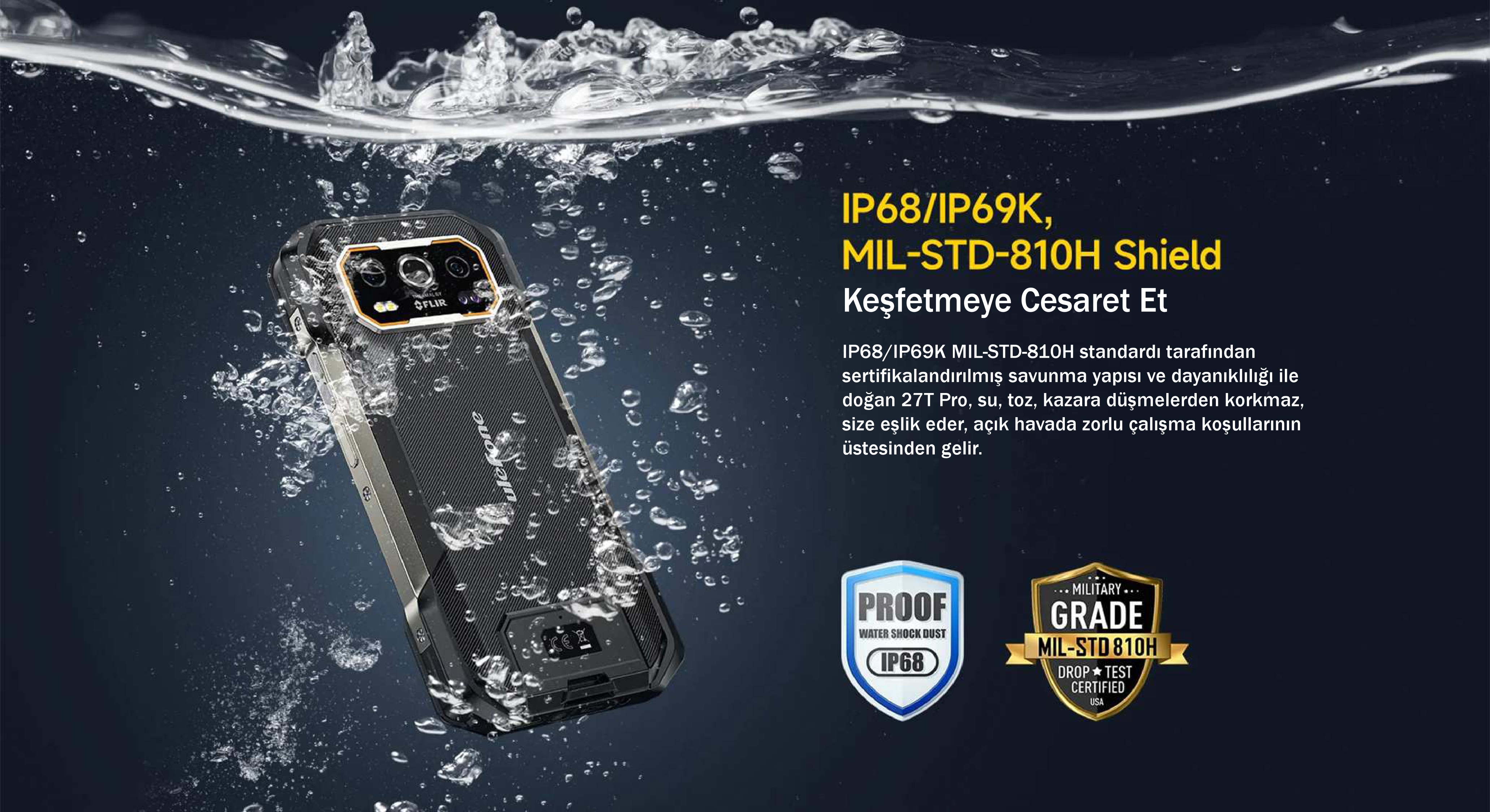 *Armor 27T Pro su sıçramasına, suya ve toza dayanıklıdır ve IEC standardı 60529 kapsamında IP68 derecesi ile kontrollü laboratuvar koşullarında test edilmiştir (maksimum 2,0 metreden 30 dakikaya kadar derinlik).