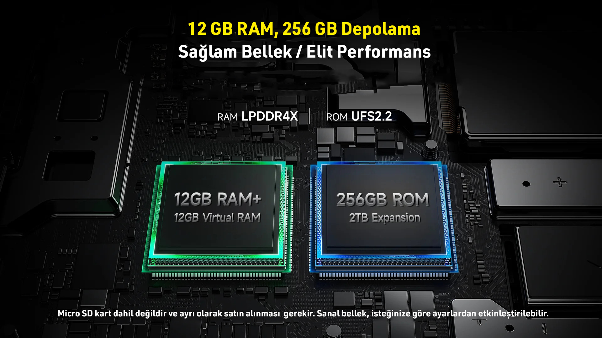 *Sanal Bellek Genişletme, Ayarlar'dan etkinleştirilebilir ve 12 GB'a kadar RAM ekler. Bazı yazılımlar bu özellikle uyumlu olmayabilir.