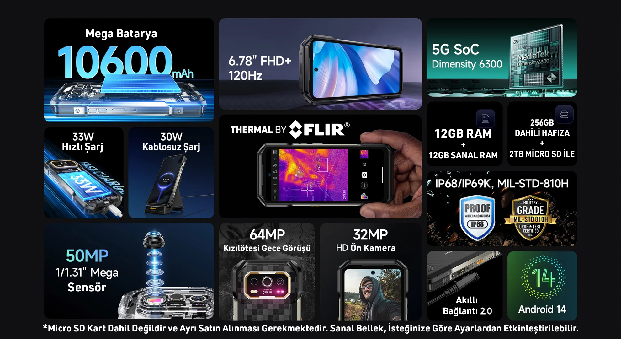 16. Pil verileri Ulefone laboratuvarından alınmıştır, gerçek performans değişebilir.